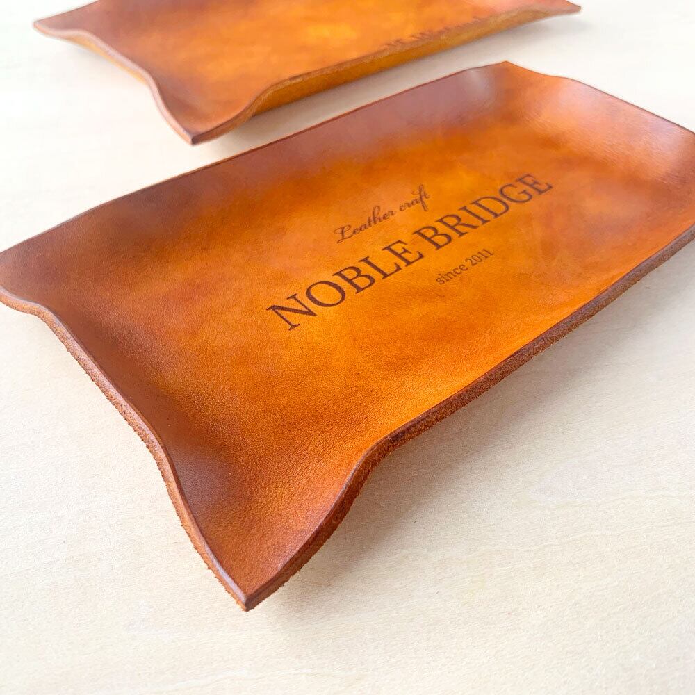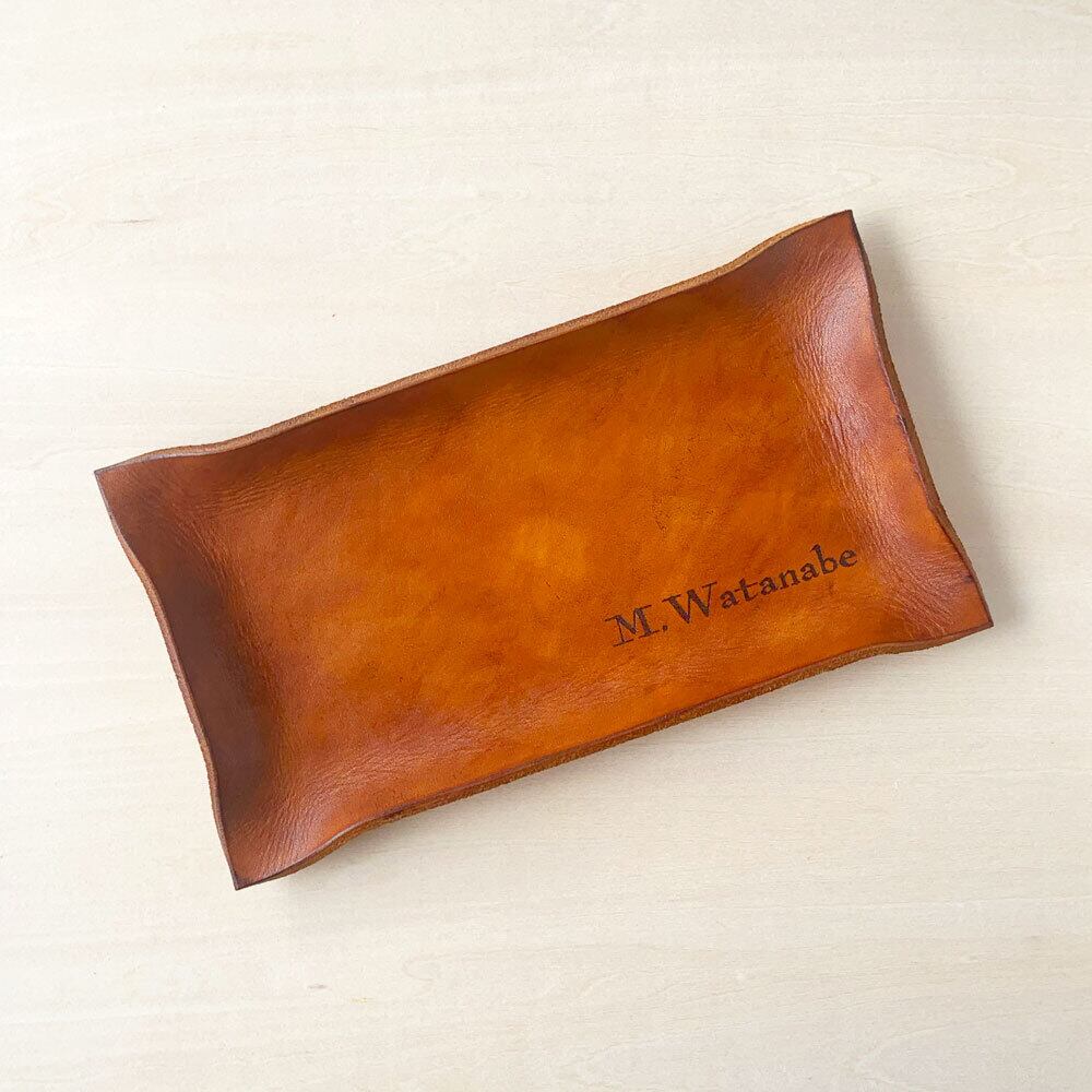 色のむらやにじみなどを手作業で表現したレザートレーです。